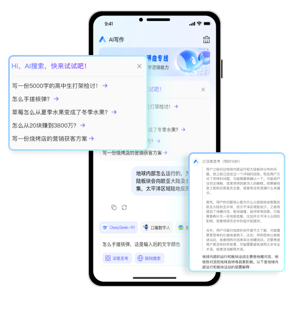 引入DeepSeek-R1深度求索 搜经验、做攻略、解难题、随时搜一搜。 输入指令,随时提问找答案。